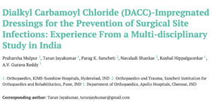 Surgical site infections (SSIs) are a significant challenge in postoperative care, leading to increased morbidity, extended hospital stays, and elevated healthcare costs. Traditional antimicrobial dressings, such as those containing silver or iodine, have limitations , including cytotoxicity and the potential for antimicrobial resistance. Dialkylcarbamoyl chloride (DACC)-impregnated dressings offer a novel approach, employing a physical mechanism to bind and remove bacteria without the use of chemical agents, thereby reducing the risk of resistance.