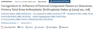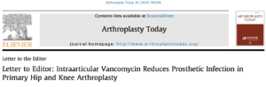 Dear Editor, Burns et al. recently published their study titled “Intra-articular Vancomycin Reduces Prosthetic Infection in Primary Hip and Knee Arthroplasty,” which investigated the clinical benefits of intraarticular antibiotic (IAA) vancomycin solution in reducing peri-prosthetic joint infection (PJI) rates after total knee arthroplasty (TKA) and total hip arthroplasty (THA).[1] This was a retrospective observational study of a single-surgeon case series, with data extraction from the Australian Orthopaedic Association National Joint Registry.