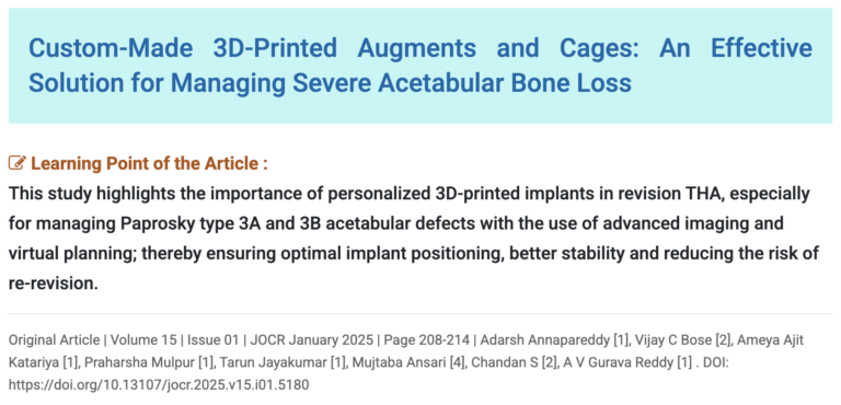 Total hip arthroplasty (THA) is recognized as one of the most effective surgical procedures for the treatment of end-stage hip arthritis. However, the increasing number of primary THA cases has led to a corresponding rise in the frequency of revision surgeries, which are often more complex and challenging due to severe acetabular bone loss. In such cases, managing Paprosky type 3A and 3B defects requires precise implant design and advanced surgical techniques.