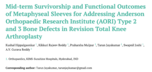 Introduction: Revision Total Knee Arthroplasty (RTKA) is a complex procedure challenged by significant bone loss, necessitating effective restoration techniques. This study investigates the clinical outcomes and complications of metaphyseal sleeves in RTKA with severe metaphyseal bone loss, aiming to evaluate their efficacy over a minimum four-year follow-up.