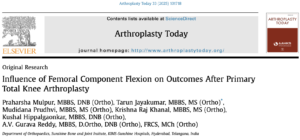 Total knee arthroplasty (TKA) improves pain relief and function in end-stage arthritis. While coronal alignment has been well studied, the impact of femoral component flexion in the sagittal plane on outcomes remains underexplored. This study examines the effect of femoral component flexion on patellofemoral outcomes, using the Kujala anterior knee pain scale, and overall functional results after robotic-assisted TKA.